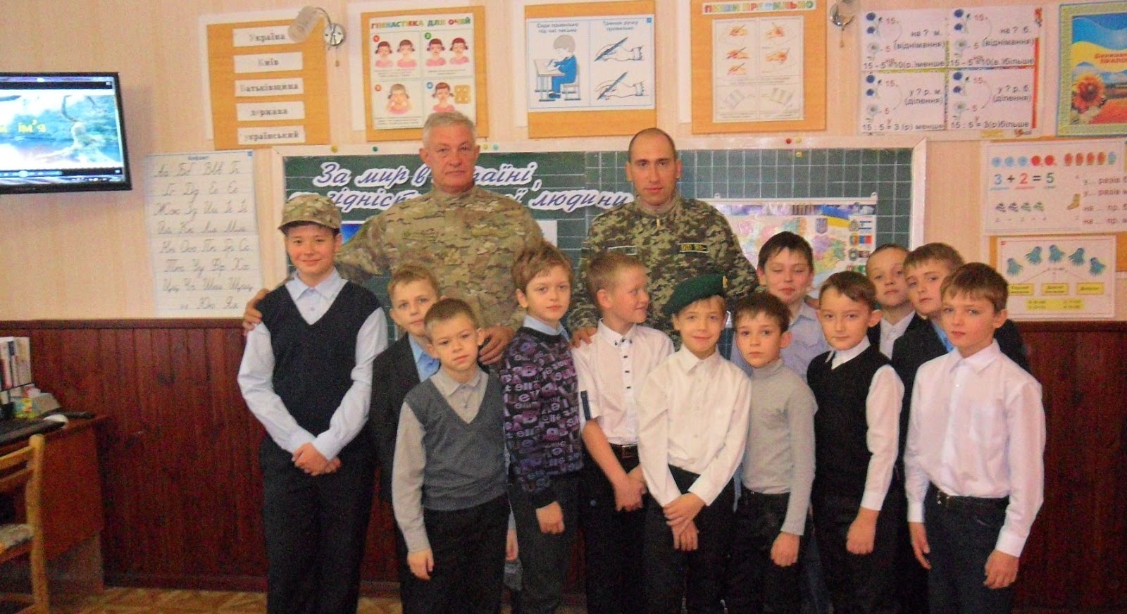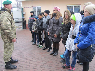 Начальник вогневої підготовки відділу персоналу майор Леонід Домінюк розповів дітям наскільки мужніми були ці люди, які не побоялись віддати своє життя за їхнє майбутнє. Також школярам показали розгорнуті експозиції та тематичну виставку, продемонстрували відеофільм про Донецький прикордонний загін та показали фотографії героїв-прикордонників АТО. Подивившись виставку, діти із задоволенням приміряли на себе амуніцію прикордонників та побували в справжніх бліндажах.