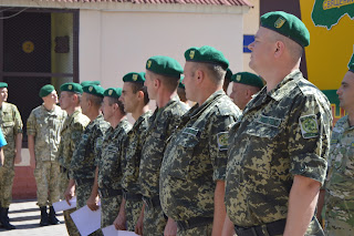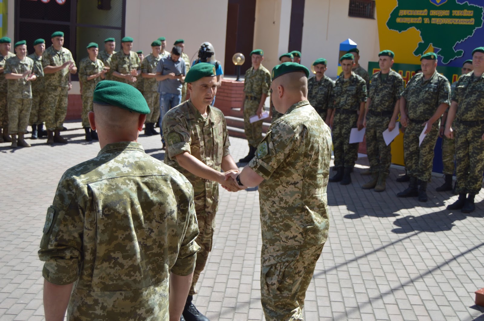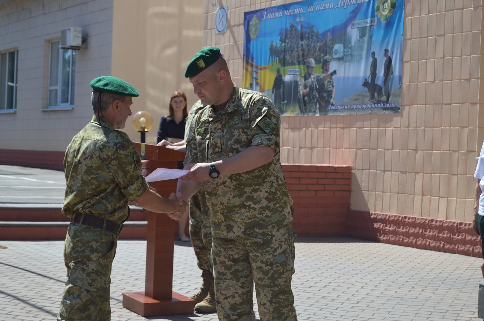 Особовий склад вишикуваний. Для прощання заносять бойовий прапор військової частини. Звучить гімн України. З привітальним словом виступає начальник Донецького прикордонного загону полковник Андрій Ігнатьєв та голова організації ветеранів-прикордонників полковник Антон Бобко. Хвилиною мовчання вшановують світлу пам’ять загиблих героїв-прикордонників, які поклали свої життя виконуючи громадянський обов’язок. За зразкове виконання службово-бойових завдань, проявлений високий професіоналізм та майстерність усі 14 військовослужбовців нагороджені грамотами.