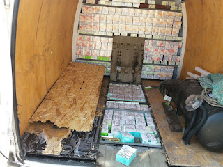 За оперативною інформацією прикордонники Донецького загону щойно у контрольному пункті в’їзду-виїзду “Гнутове” виявили 200 блоків прихованих цигарок.