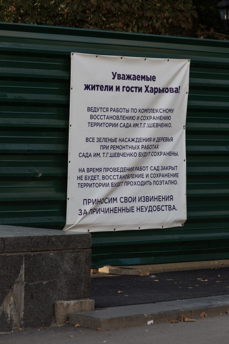 Договор на изготовление проектной документации реконструкции сада Шевченко между СКП «Харьковзеленстрой» и ООО «АРОФ», по данным сайта публичных закупок Prozorro, заключён 19 сентября. Стоимость сделки — 1 094 662,27 гривен.
