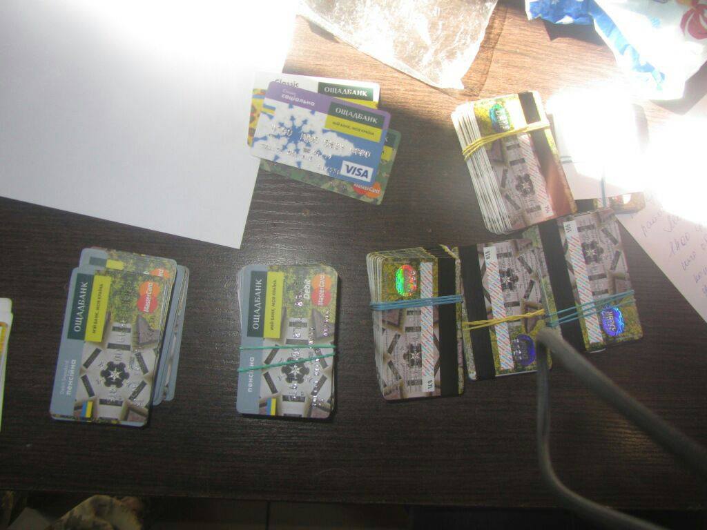 Жінка 1981 року народження прямувала з Донецька в Маріуполь. Під час огляду автомобіля “Шевроле” у ніші для рукавичок правоохоронці виявили банківські картки.
