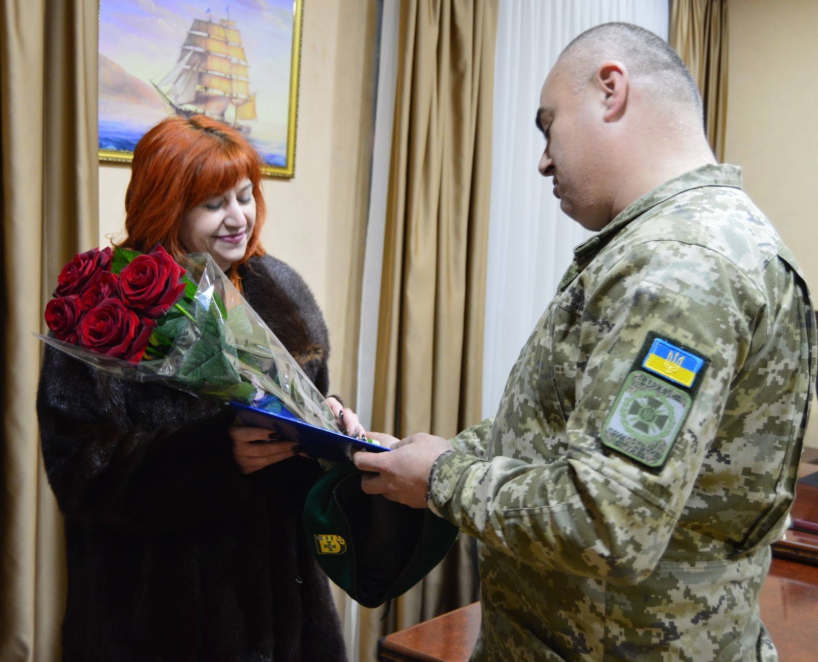 Сьогодні, п’ятого грудня, в Україні святкують Міжнародний день волонтерів. Керівництво загону долучились до привітань та пам’ятними дарунками відзначили волонтерів, котрі з початку агресії на східній ділянці надавали та продовжують надавати допомогу прикордонникам Донецького загону. Не шкодуючи власних сил, а зачасту і заощаджень вони вносять свій безцінний вклад на благо та зміцнення української армії. Начальник Донецького прикордонного загону полковник Іван Чорнопіщук особисто привітав зі святом двох представниць волонтерської організації та вручив квіти. В знак подяки за тісну співпрацю волонтери також отримали символ усього прикордонного війська – зелені берети. Подарунки супроводжувались теплими словами подяки, а на завершення зробили спільне фото на згадку.
