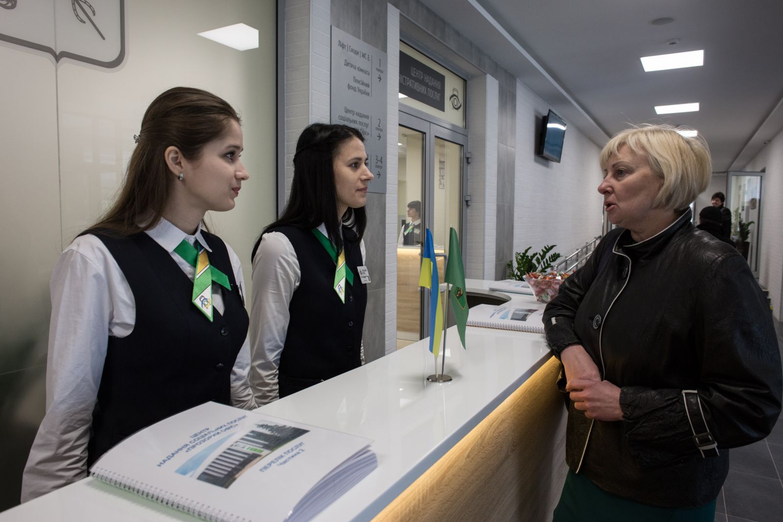 «Граждане могут обратиться по вопросам регистрации, снятия с регистрации, получения паспорта Украины в виде ID-карты, получения паспорта Украины с бесконтактным электронным носителем для выезда за границу, а также за получением ряда социальных услуг — например, оформлением компенсации, льгот, пенсий», — объяснила директор Департамента административных услуг и потребительского рынка Виктория Китайгородская на открытии «прозрачного офиса» в Шевченковском районе.